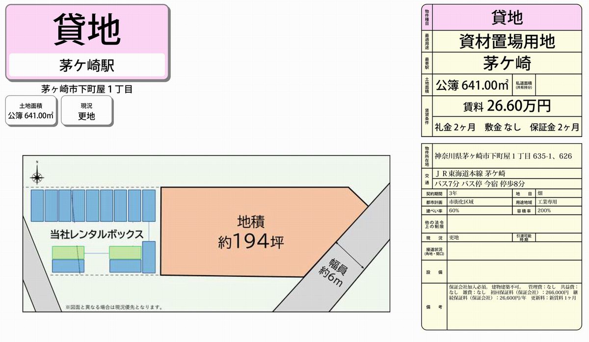 神奈川県内の貸し倉庫・貸し工場の情報満載(トップ) > 神奈川のエリアで探す > 茅ヶ崎市 > 茅ヶ崎 > 茅ヶ崎市下町屋1-635-1 茅ヶ崎 貸地