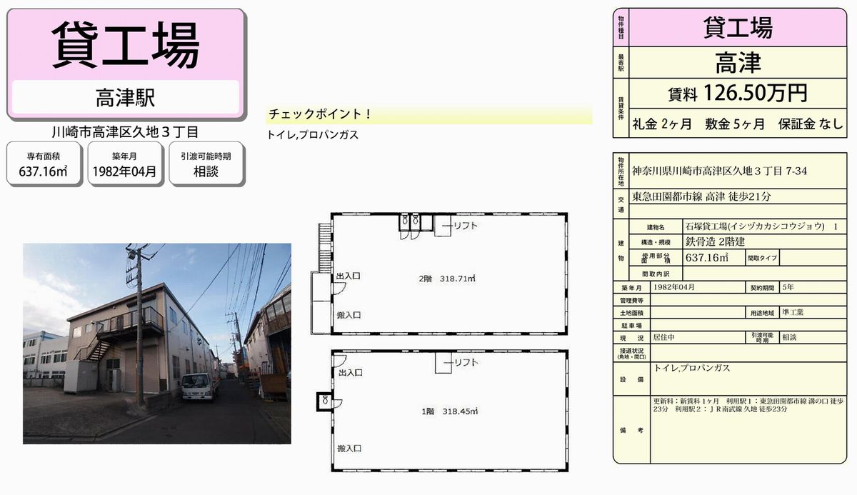 神奈川県川崎市高津区久地3-7-34 (高津) 石塚貸工場1 詳細データ