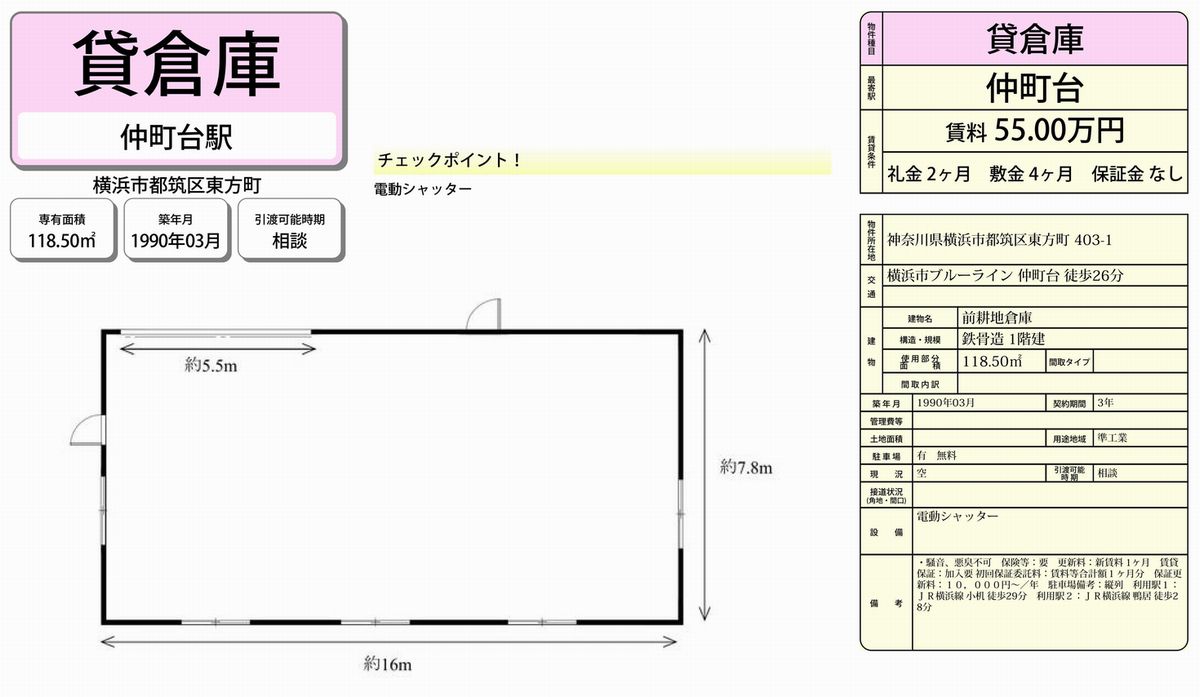 神奈川県横浜市都筑区東方町403-1 (新羽) 前耕地倉庫 詳細データ