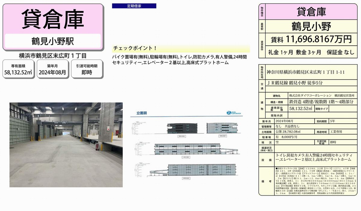神奈川県横浜市鶴見区末広町1-1-11 (鶴見小野) 鶴見小野 貸倉庫 詳細データ