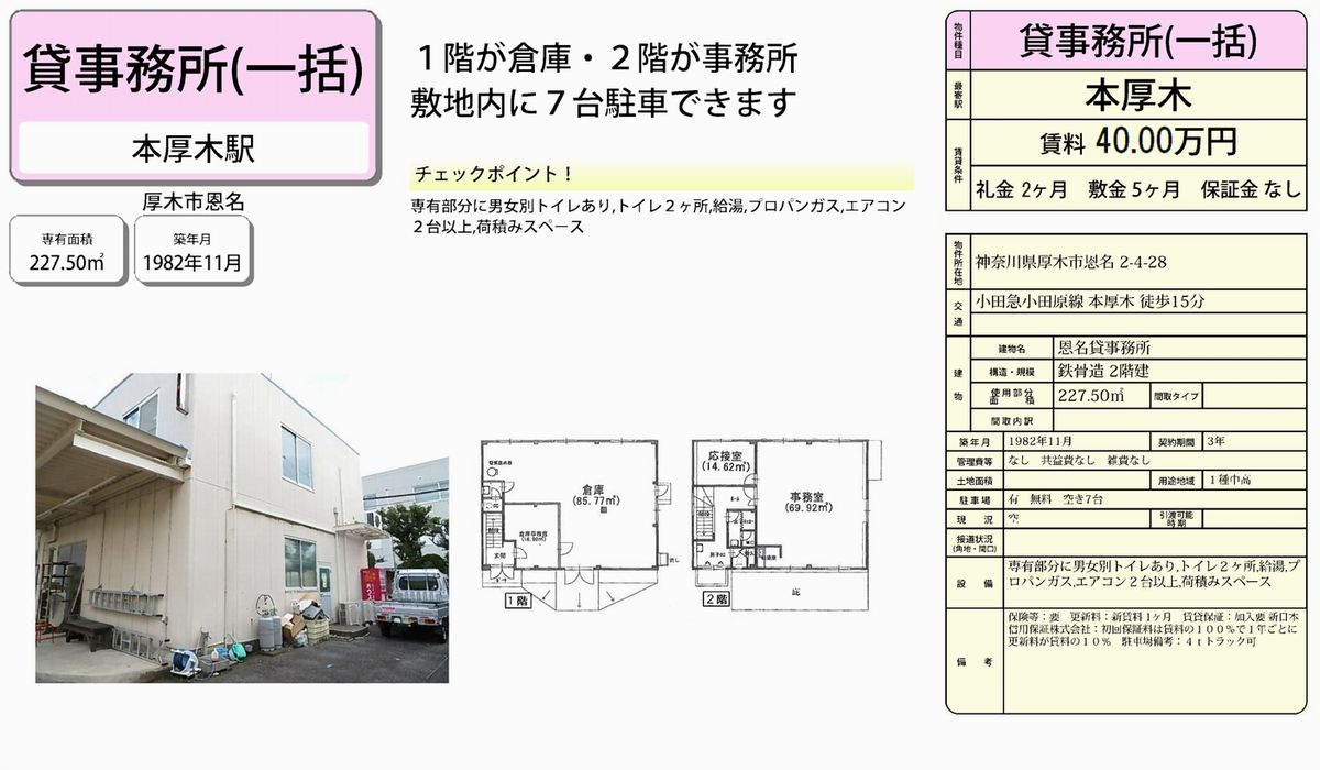 神奈川県厚木市恩名2-4-28 (本厚木) 恩名貸事務所 詳細データ