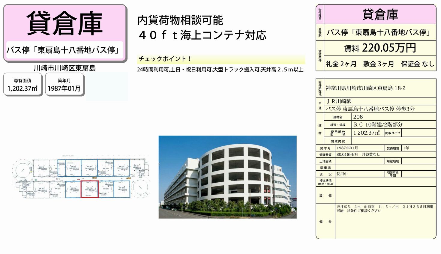 神奈川県川崎市川崎区東扇島18-2 (川崎) 川崎 倉庫 詳細データ