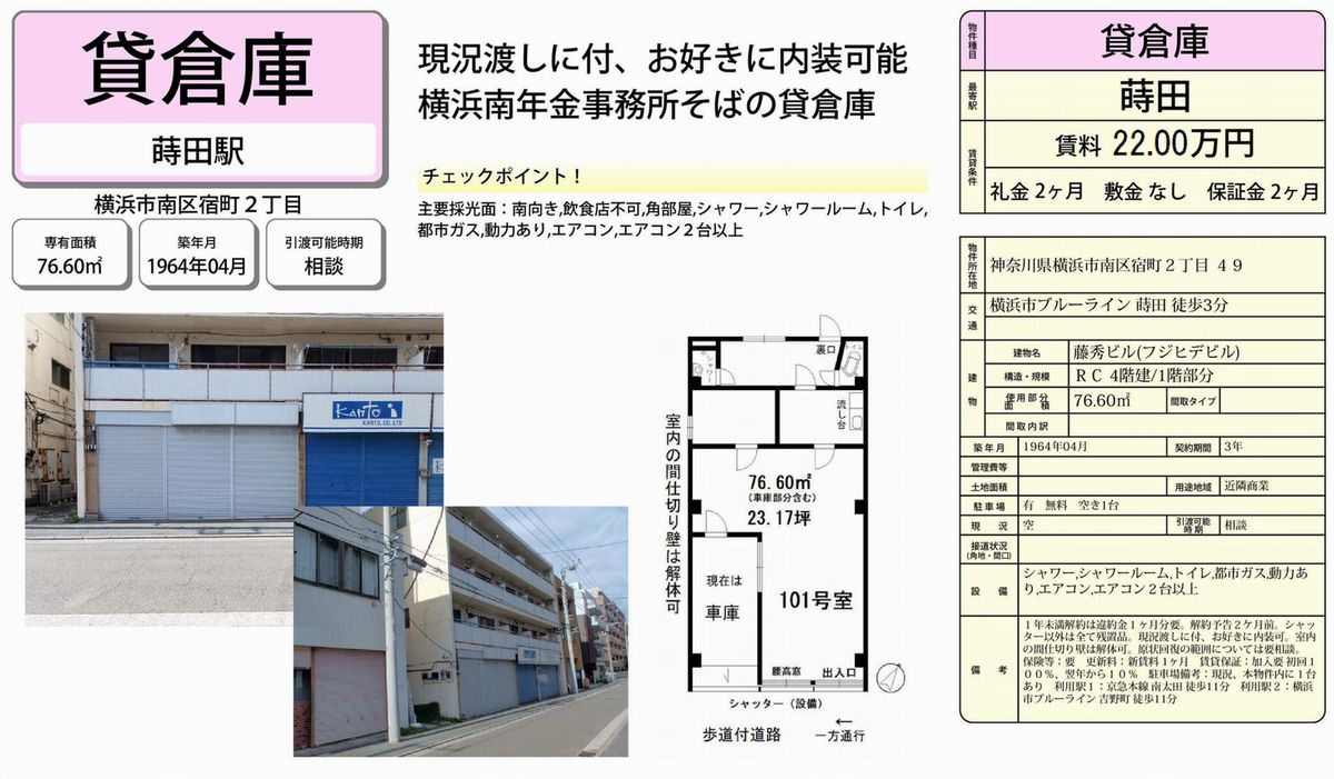 神奈川県横浜市南区宿町2-49 (蒔田) 藤秀ビル 詳細データ