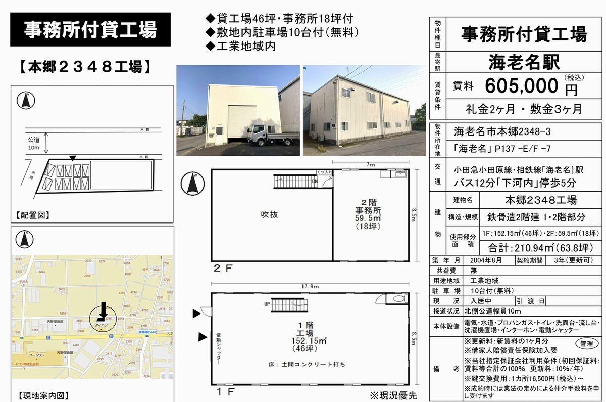 神奈川県海老名市本郷2348-3 (海老名) 海老名 貸工場 詳細データ