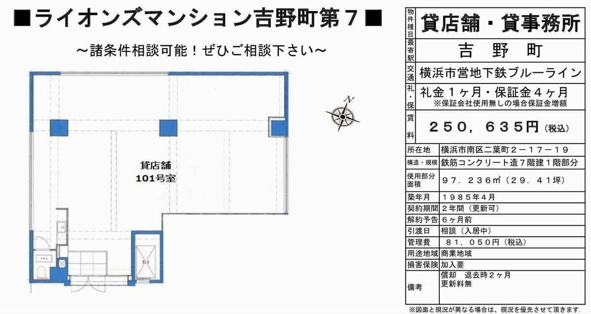 神奈川県横浜市南区二葉町2-17-19 (吉野町) ライオンズマンション吉野町第7 詳細データ