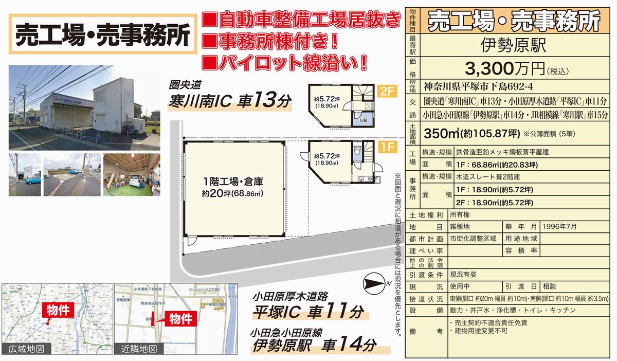 神奈川県平塚市下島692-4 (伊勢原) 伊勢原 売工場 詳細データ