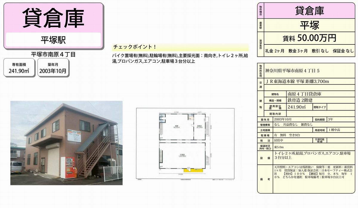 神奈川県平塚市南原4-5-32 (平塚) 平塚 貸倉庫 詳細データ