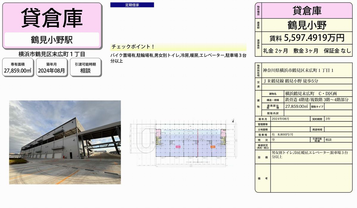 | 物件名 | 鶴見小野 貸倉庫 |