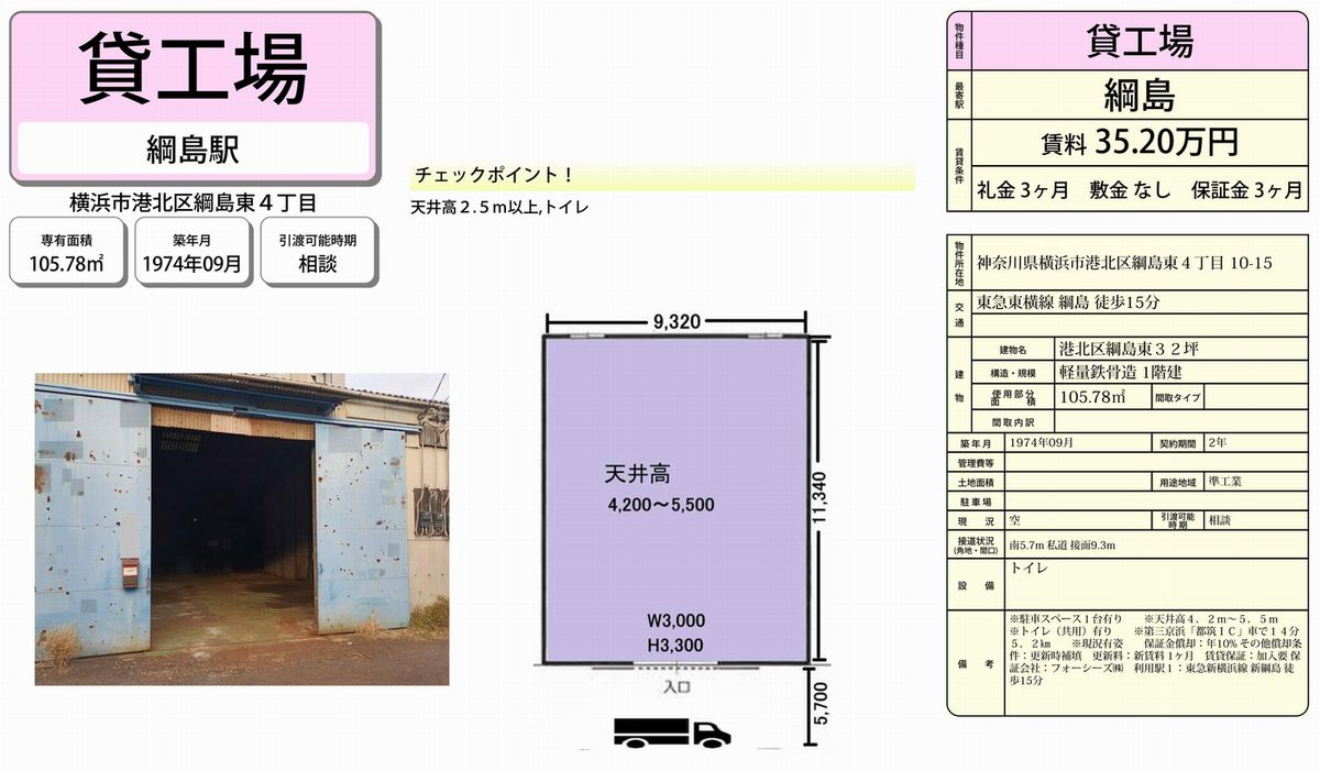 | 物件名 | 綱島 貸工場 |