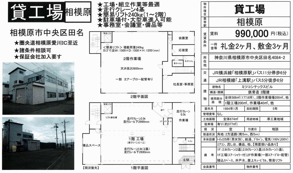 神奈川県相模原市中央区田名4084-2 (相模原) ミツコシテックスビル 詳細データ