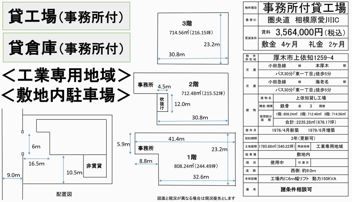 神奈川県厚木市上依知1259-4 (本厚木) 本厚木 貸工場 詳細データ