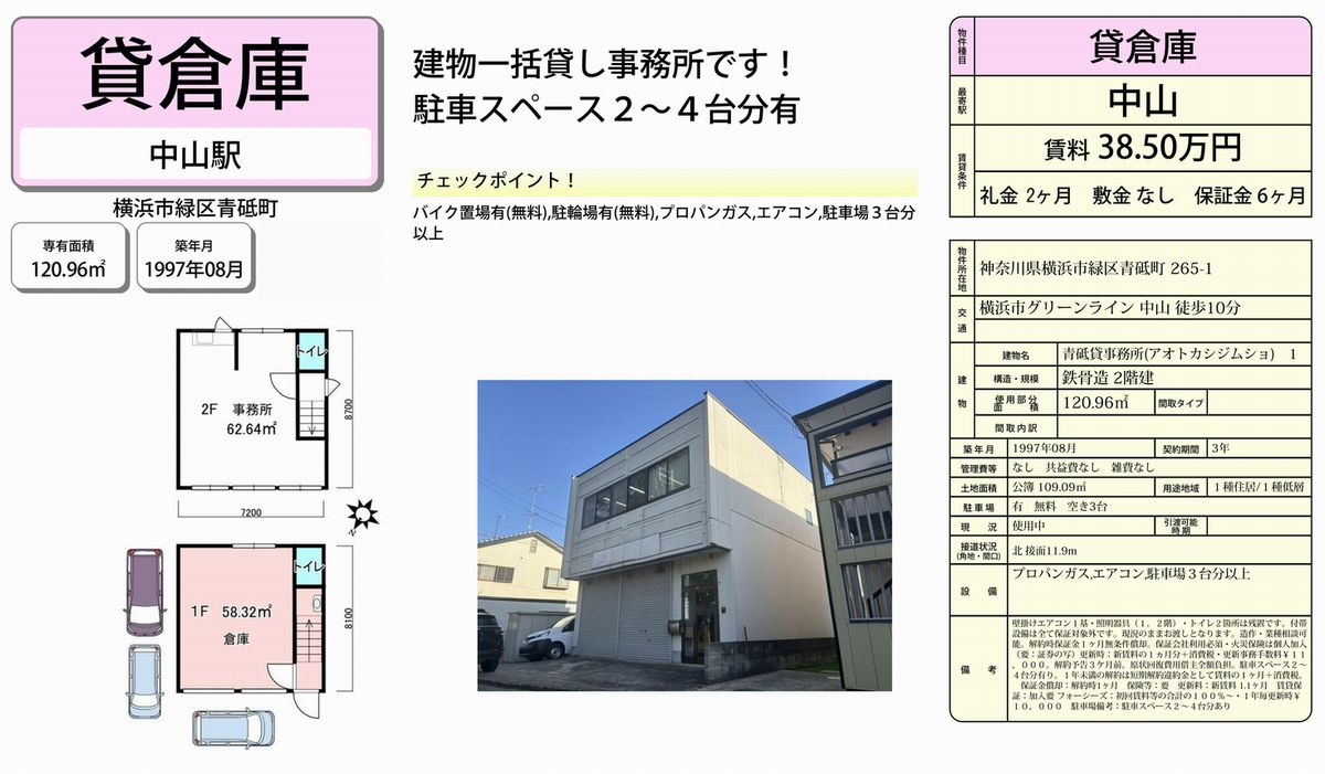 神奈川県横浜市緑区青砥町265-1 (中山) 中山 貸倉庫 詳細データ