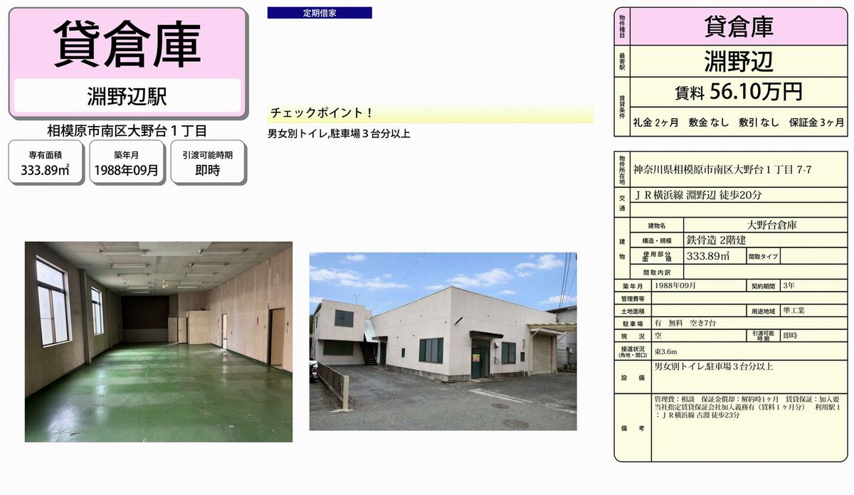 神奈川県相模原市南区大野台1-7-7 (淵野辺) 大野台倉庫 詳細データ