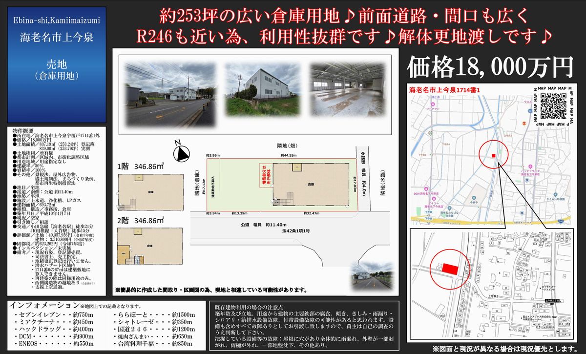 神奈川県海老名市上今泉1714-1 (海老名) 海老名 売倉庫 詳細データ